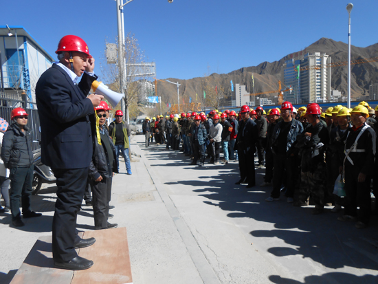 11月12日,第十一工程局拉薩指揮部組織中太·城市廣場(chǎng)項(xiàng)目部及施工隊(duì)全體人員召開(kāi)了安全宣傳學(xué)習(xí)大會(huì)。此次會(huì)議由項(xiàng)目部經(jīng)理高進(jìn)來(lái)及集團(tuán)安全總監(jiān)兼項(xiàng)目部生產(chǎn)經(jīng)理郝建東共同主持,監(jiān)理公司總監(jiān)及項(xiàng)目東西區(qū)負(fù)責(zé)人均在會(huì)上宣誓并對(duì)員工提出安全生產(chǎn)相關(guān)要求,并鼓勵(lì)和號(hào)召工人加強(qiáng)自我防范意識(shí),保證工程順利安全完工。