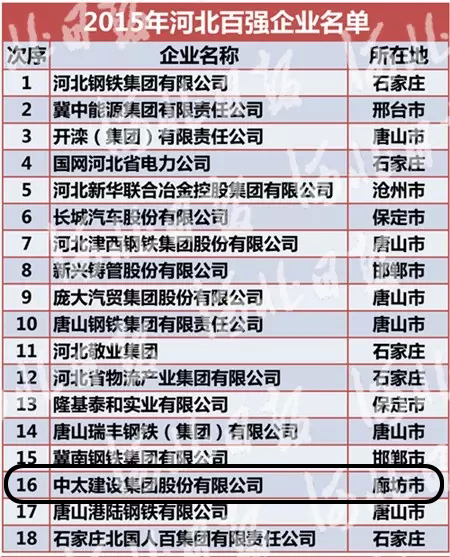 中太建設集團連續五年躋身“中國企業500強(較2014年前進3名)和“中國民營企業500強”(名列第73位),并在河北省民營企業建筑業中名列第一。同時躋身“中國建筑業競爭力百強企業”榜單,并位列第18位,較去年進步3位,在河北省建筑業名列第1位。