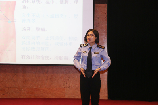 在中國環境健康與衛生安全促進會河北分會的大力支持下,中國安全健康教育中心河北站特邀講師、省健康教育專業委員會委員、宣教科科長孫京苗走進中太大廈,圍繞現場緊急救護知識、空氣污染的危害以及健康防護、經絡穴位養生知識、職業病的防治等內容,從實際案例出發,深入淺出、形象生動的剖析健康的重要性以及相關健康危險源的防治方法,同時還邀請現場員工代表上臺,與老師合作為現場員工形象的解析了物理治療的原理。孫京苗老師的精彩授課得到了在場員工的一致認可。