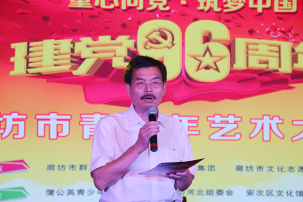 他在致詞中指出,今天我們在這里慶祝黨的“生日”,舉辦“中太之聲――童心向黨·筑夢中國”,慶祝中國共產黨建黨96周年青少年藝術選拔賽和大聯歡活動,是為了更好地歌頌中國共產黨領導的中國革命和社會主義建設所取得的豐功偉績與偉大成就,激發廣大黨員和青少年知黨、愛黨、跟黨走的情懷和立志成才、報效祖國的決心,也是展示我們廊坊市青少年優秀藝術新人風采,提高青少年思想與藝術素質一次良好機會。希望這樣的慶祝活動和“蒲公英計劃”落實行動能堅持下去,越辦越好。為黨和國家培育與輸送我們河北廊坊更多的青少年藝術新人和優秀人才,同時他號召集團公司各級黨組織要團結、帶領廣大黨員與黨中央保持高度一致,以黨的事業為重,與時俱進,聯系實際,積極工作,攻堅克難,勇于擔當,充分地發揮好黨組織的凝聚力和黨員的模范帶頭作用,為中太的持續創新、健康和諧發展,為振興河北、繁榮廊坊,實現黨和國家“兩個一百年”的奮斗目標而不懈地努力,以優異的成績迎接黨的“十九大”的勝利召開。