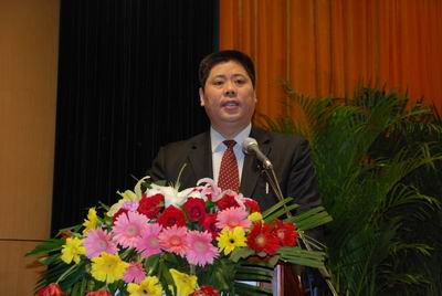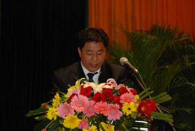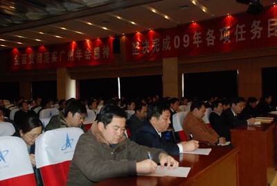 中太大廈二樓報告廳,鮮花吐艷,綠葉蔥蔥。“全面貫徹落實廣州年會精神,堅決完成09年任務目標”的大幅標語格外醒目。