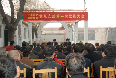 3月17日上午,中太資產管理集團在南門外水泥制品公司召開第一次全體黨員大會,公司黨委副書記鐘崇鶴到會并講話?偨浝砑纥h總支部書記楊召國主持會議。