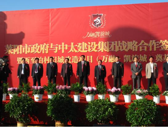 市長(zhǎng)孫德奎代表市政府與總裁張明禮簽署了萊陽(yáng)市人民政府與中太建設(shè)集團(tuán)的全面戰(zhàn)略合作框架協(xié)議,未來(lái)幾年,雙方將在城市基礎(chǔ)設(shè)施、房地產(chǎn)開(kāi)發(fā)和城鎮(zhèn)化建設(shè)等方面進(jìn)行廣泛合作。同時(shí)成立全面戰(zhàn)略合作領(lǐng)導(dǎo)小組,孫德奎市長(zhǎng)與總裁張明禮各任已方組長(zhǎng)。建立溝通協(xié)調(diào)制度,為雙方戰(zhàn)略合作發(fā)展創(chuàng)造良好的條件。
