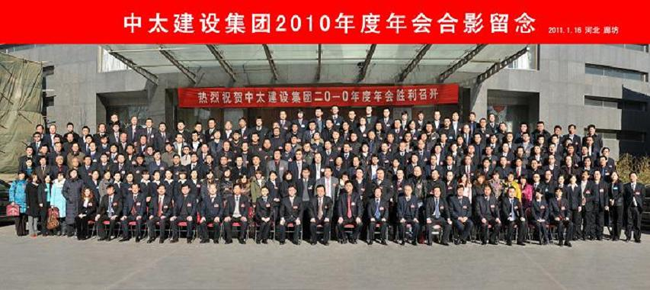 “規(guī)范管理謀發(fā)展 創(chuàng)先爭優(yōu)譜新篇”。在辭舊迎新之際,1月16日上午,中太建設集團在廊坊中太大廈二樓報告廳隆重召開了2010年度年會,總結過去,謀劃未來。董事局主席、黨委書記李文健到會并做重要講話。中太投資控股集團副總裁趙志民,董事局成員(董事局秘書);監(jiān)事會成員;經(jīng)營層成員;來自全國各地的各工程局長、副局長;外埠各分公司、子公司(董事長、經(jīng)理、書記);廊坊區(qū)域分公司、子公司(董事長、經(jīng)理、書記、副經(jīng)理、主任工程師、辦公室主任);總部機關全體人員;2010年度部分受集團表彰先進集體和先進個人共計300人參加了會議。大會由集團副總裁劉啟友主持。