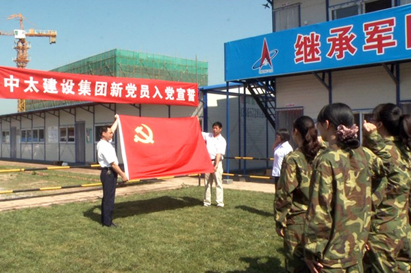 7月3日上午9點(diǎn),中太建設(shè)集團(tuán)黨委在安瑞科項(xiàng)目工地舉行新黨員入黨宣誓儀式。在鮮紅的中國(guó)共產(chǎn)黨黨旗面前, 16名新黨員整齊排列成行,舉起右手,握拳過(guò)肩,莊嚴(yán)宣誓,表達(dá)了為共產(chǎn)主義事業(yè)奮斗終身的決心。集團(tuán)黨委副書記鐘崇鶴參加宣誓儀式并講話。他代表集團(tuán)黨委向全體新黨員表示祝賀,并提出了明確的要求和希望。他希望新黨員同志們不要辜負(fù)黨組織的期望,牢記入黨誓言,牢記全心全意為人民服務(wù)的宗旨,發(fā)揚(yáng)黨的優(yōu)良傳統(tǒng)和作風(fēng),在“創(chuàng)先爭(zhēng)優(yōu)”活動(dòng)中,在各自的工作崗位上,熱愛本職、學(xué)習(xí)本領(lǐng),努力工作,發(fā)揮好黨員的先鋒模范帶頭作用,為黨的事業(yè)和中太的發(fā)展做出自己新的、更大的貢獻(xiàn),以更加優(yōu)異的成績(jī),喜迎黨的十八大的勝利召開,無(wú)愧于共產(chǎn)黨員的光榮稱號(hào)!