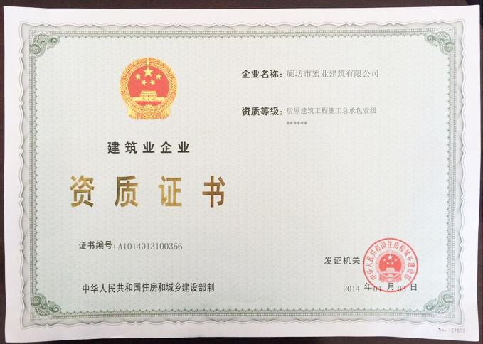 廊坊市宏業建筑有限公司晉升房屋建筑工程施工總承包壹級資質后,將充分利用資質優勢,根據市場運營效果,整合資源,合理布局,實施有效監管,快速穩妥的擴張市場規模,實現企業綜合實力上檔升級的目標。