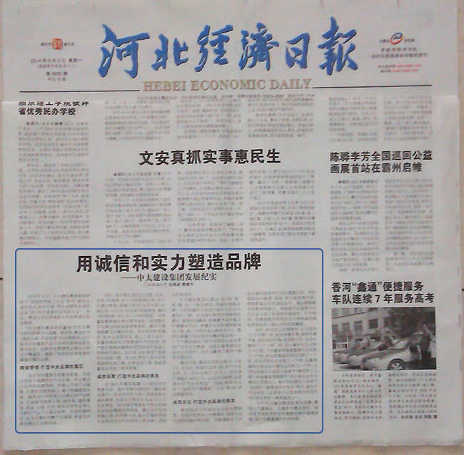 河北經濟日報報道了中太建設集團用誠信和實力塑造品牌