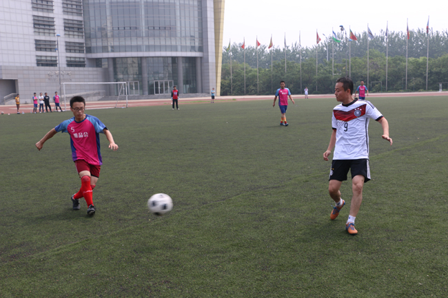 6月22日上午,正值世界杯期間,中太建設集團與唯品會天津物流有限公司的員工足球愛好者們在天津武清區天獅學院舉行了一場足球友誼賽,有效增進了雙方友誼,為雙方進一步戰略合作打下堅實基礎。圖為比賽現場。