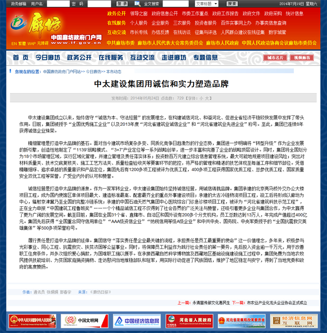 廊坊政府網中太建設集團用誠信和實力塑造品牌
