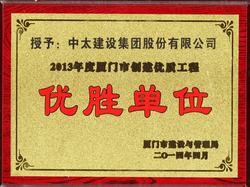 近日,中太建設集團榮獲2013年度“廈門市創建安全文明工地優勝單位”、“廈門市建設工程質量安全生產文明施工先進單位”、“廈門市創建優質工程優勝單位。何波、曹仰高被評為先進個人。(第九工程局)