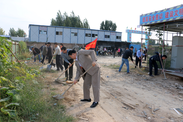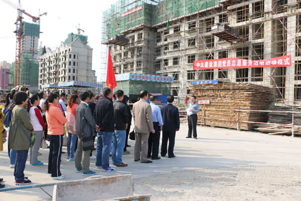 在新中國成立65周年之際,9月30日是我們黨和國家設立的首個烈士紀念日,集團黨委在科技谷盛澤花城項目工地舉行黨員志愿服務活動啟動儀式,這是貫徹落實上級黨組織和集團黨委[2014]17號文件精神,繼承革命先烈遺志,弘揚黨的優良傳統,踐行社會主義核心價值觀,推動形成社會文明進步新風尚實際行動和舉措,集團公司機關部分黨員,廊坊區域各支部書記、黨員志愿服務隊隊員和入黨積極分子等60多人參加今天的儀式;顒觾x式后,全體隊員參加了科技谷盛澤花城項目工地義務勞動。集團黨委副書記鐘崇鶴代表黨委對黨員志愿服務活動啟動儀式提出三點要求: